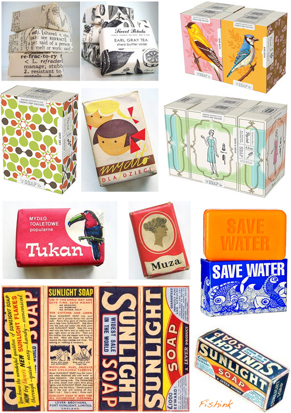 I did a little browsing on the net about vintage and modern soap packaging and came up with these.
