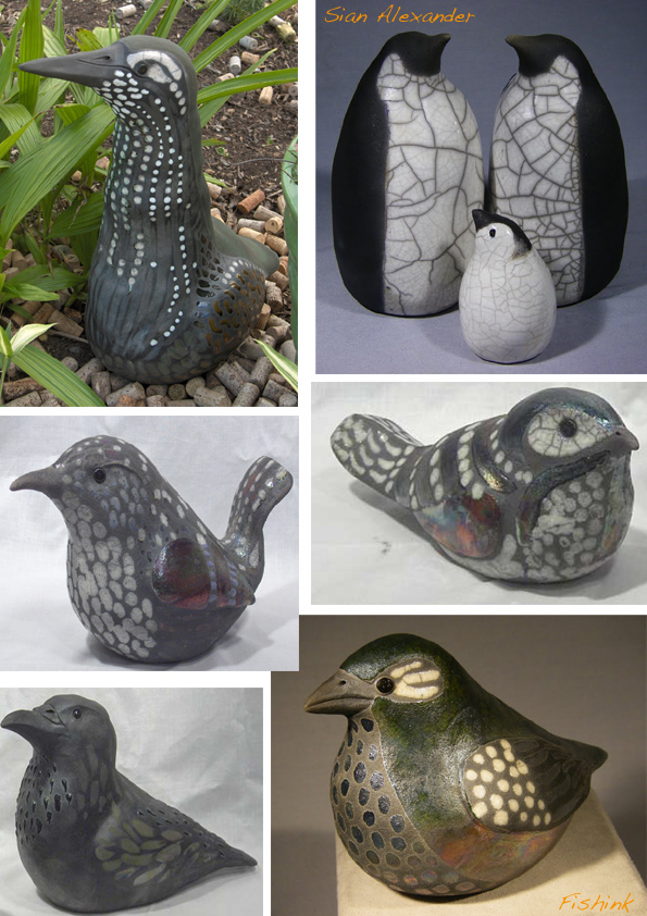 She likes to create birds and other creatures in ceramic form and often fires using a Raku process