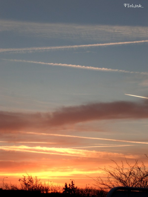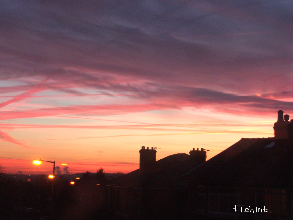My dad who had been in the Navy would say this about red skies: “Red sky in the morning, sailors warning, red sky at night, sailor’s delight”. I don’t know if that is the whole thing or not, but it must have originated from the Navy.