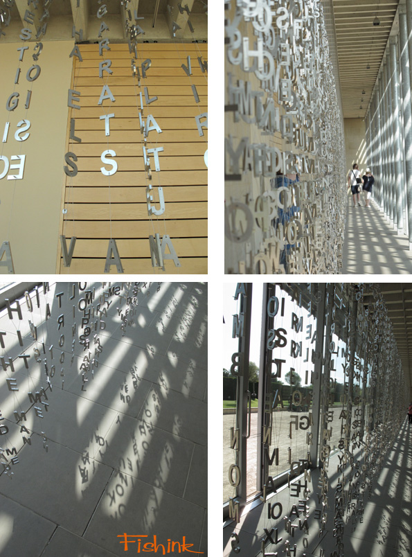 with a row of metal letters suspended on wires. You are encouraged to run your fingers along them