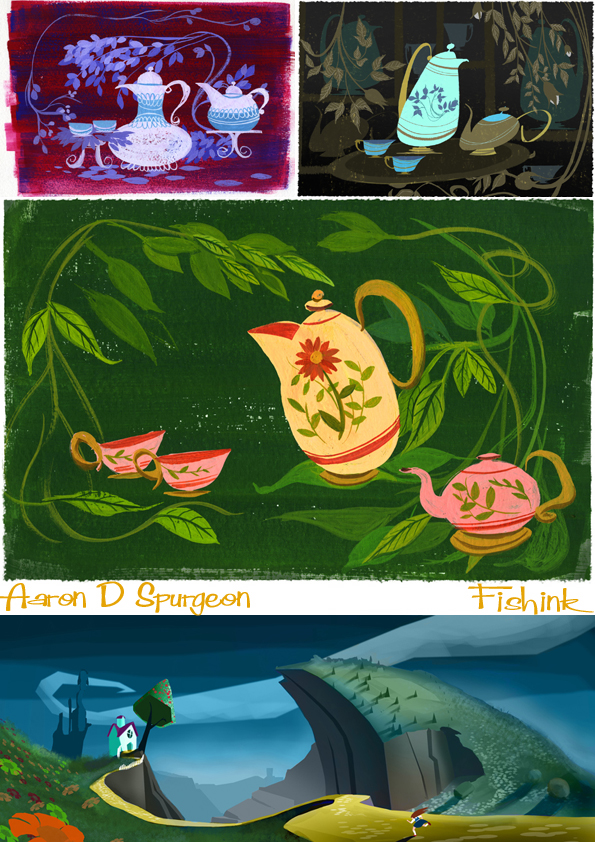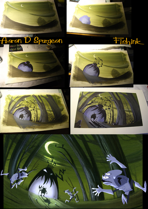 It’s fascinating to see how Aaron builds up this piece, first with paint and then on the computer.