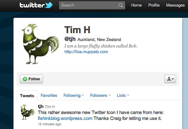for his twitter icon. I was happy for him to do this and he left a tweet to let everyone know