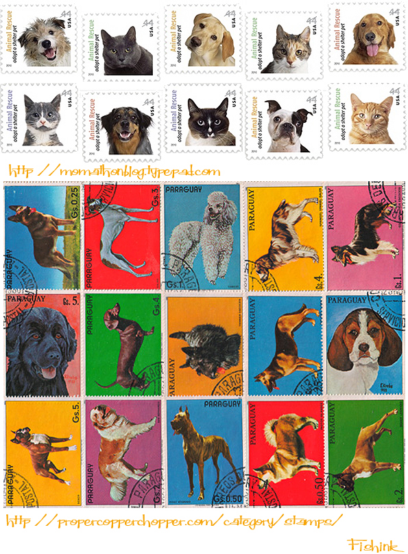 So I got to thinking about other dog stamps that have been produced. Here’s a few to highlight Animal Rescue saying ‘Adopt a shelter pet’ and some rather colourful offerings from Paraguay.