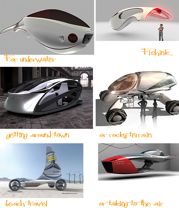 Personally the thought of watching Jeremy Clarkson effervescing, or not, over the latest batch of lad-cultured vehicles on Top Gear TV, usually leaves me feeling slightly numb and bewildered. So even though I’m not one for typically ‘wowing’ at the different makes, shapes and styles of sportscar and transport in general, somehow the thought of future technology, Space Travel or perhaps Green Transport, could be ‘the ticket’ to get me just that little bit more interested. Here’s a few ideas initially generated by artists.