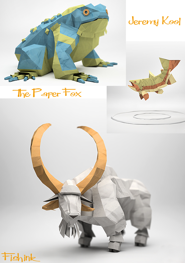A few months ago I became aware of Jeremy Kool in Melbourne, Australia. He’s a clever animator and 3-D modeller who’s stylish, animated creations, appear to make origami sculptures come to life. Here are some of the characters.