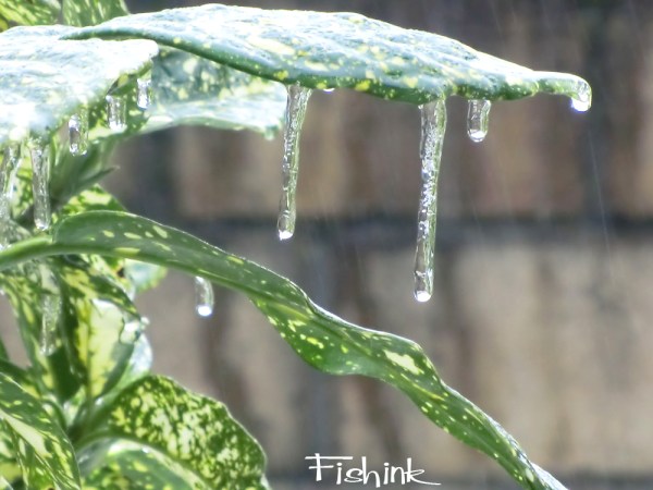 On a different note, it’s been sooo cold here in old Blighty over the past few days, that we’ve even had the odd weather feature of freezing rain. This is the name given to rain that falls when surface temperatures are below freezing. The raindrops become supercooled while passing through a sub-freezing layer of air, many hundred feet (or meters), just above the surface, and then freeze upon impact with any object they encounter. The resulting ice, called glaze, can accumulate to a thickness of several centimetres. I took this picture of the plants in my garden to show you what I mean.