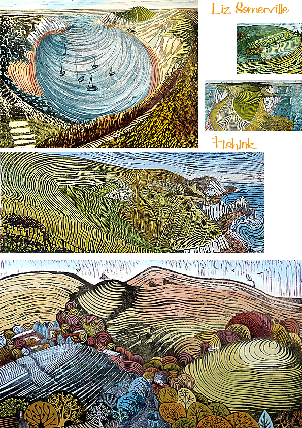 Whilst preparing these blogs this week, I also came across the amazing work of Dorset artist Liz Somerville who’s work also reminds me of the sheer beauty of this area. Especially the coast and undulating green hills and valleys. Liz is inspired by the work of Ravilious, Paul Nash and Edward Bawden and quite bizarrely has an exhibiton on in Child Okeford at The Art Stable, this is on now until March 25th so if you’re in the area do pop along.