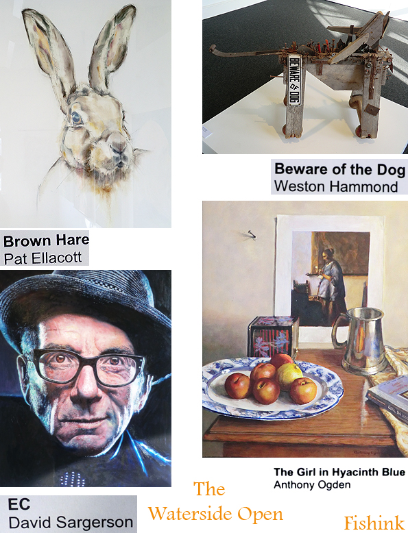 Personally the most appealing was Anthony Ogden’s ‘The Girl in Hyacinth Blue’ (above) for both it’s nod towards the work of Vermeer and for it’s fine depiction of the reflective tankard and the bowl of fruit, something of a a painterly snapshot. First prize went to ‘Beware of the Dog’, with Elvis Costello coming in third.