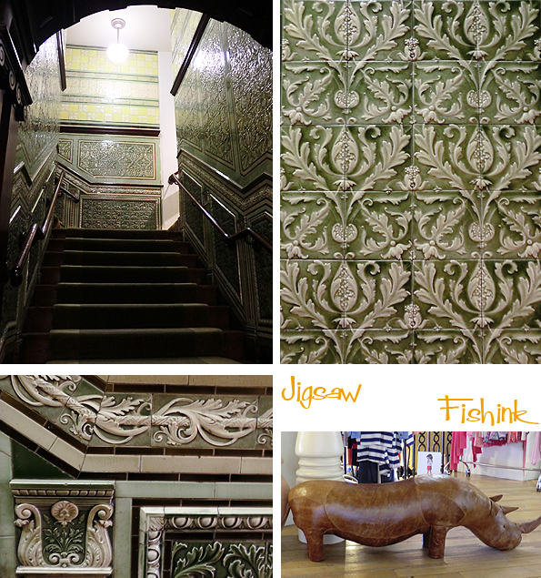 I then popped into Jigsaw to see their rather impressive stairway in the Triangle Building. Beautiful tiles and I noticed a cheeky rhino too.