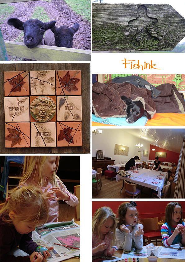 As you can see we had quite a day. We were greeted by these rather excited black lambs, even saw one being born. There were signs, showing very blobby walkers, and later Easter egg painting and Easter egg hunting and a snap of ‘Rocket’ the poor party dog who was worn out from too many late nights.
