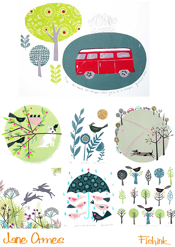 Jane Ormes was born in Bromley in 1964. She graduated with a degree in Surface Pattern Design but now concentrates on producing whimsical and decorative limited edition prints which are available from selected galleries throughout the country and her site on Etsy.