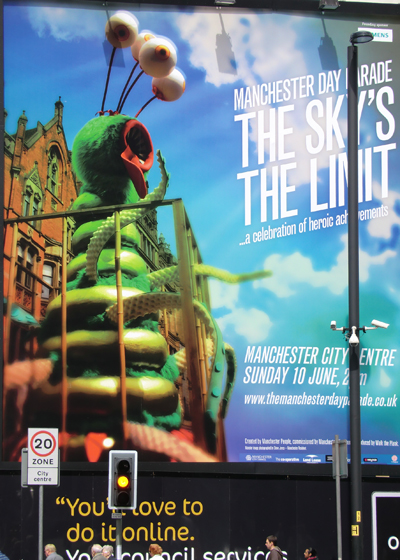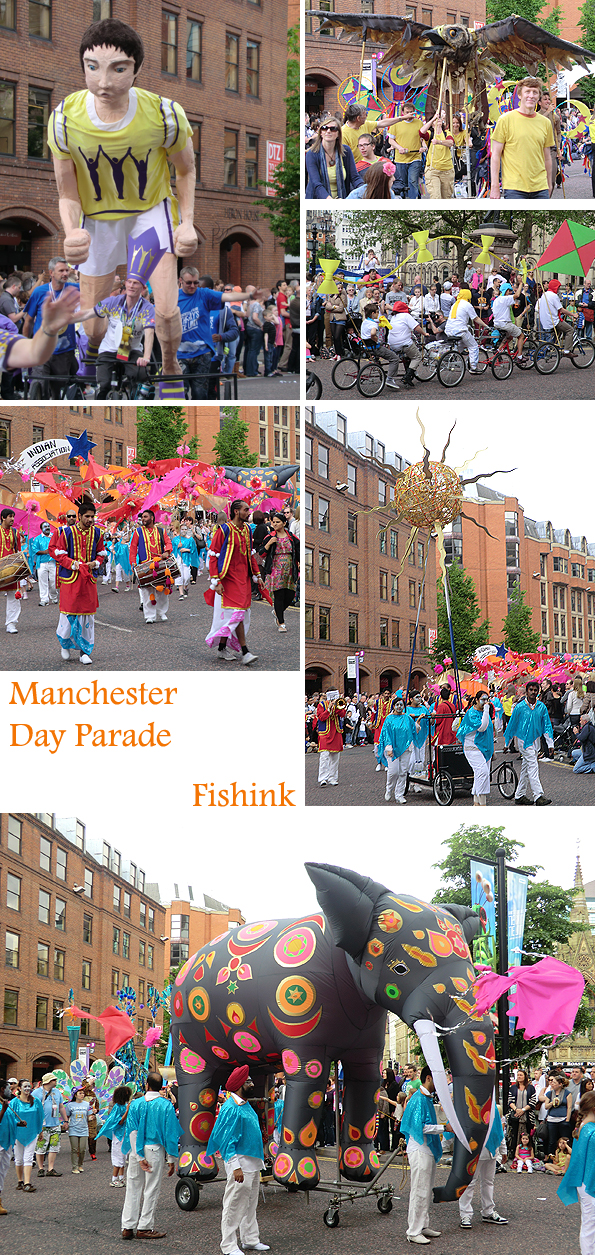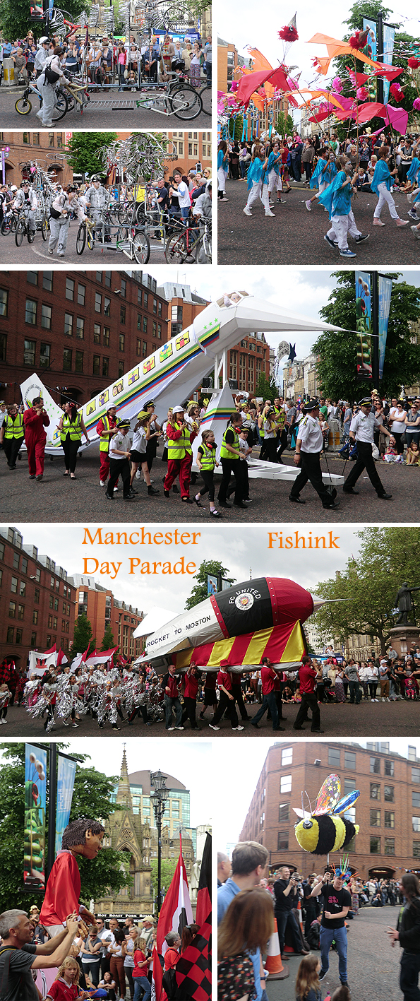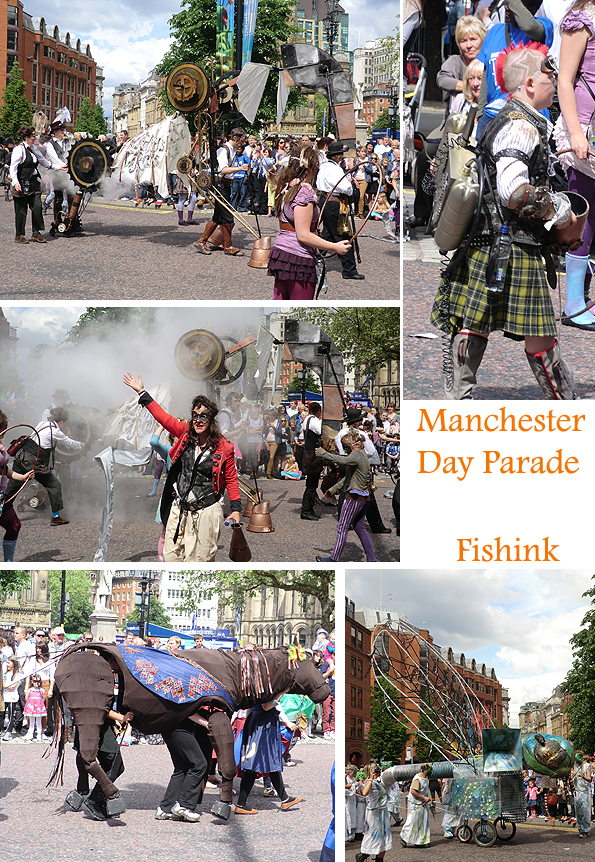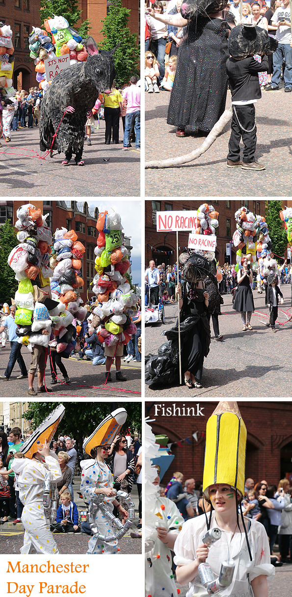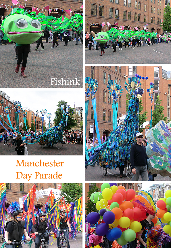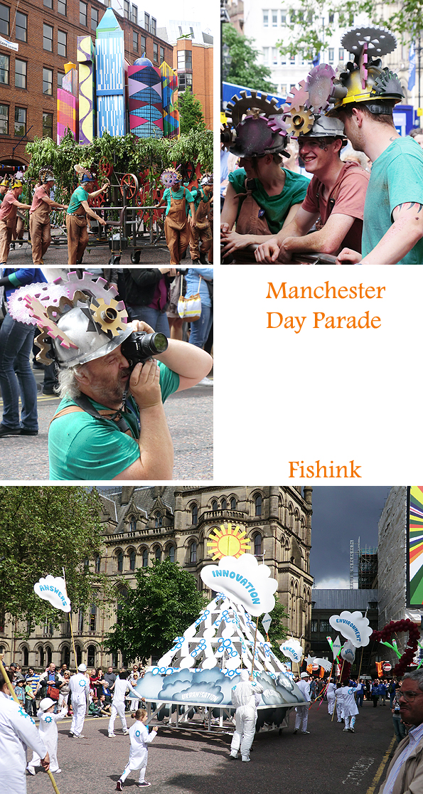 Modern themes in the parade about escaping the ratrace and being aware of the environment, as well as celebrating Manchester’s industrial achievements.