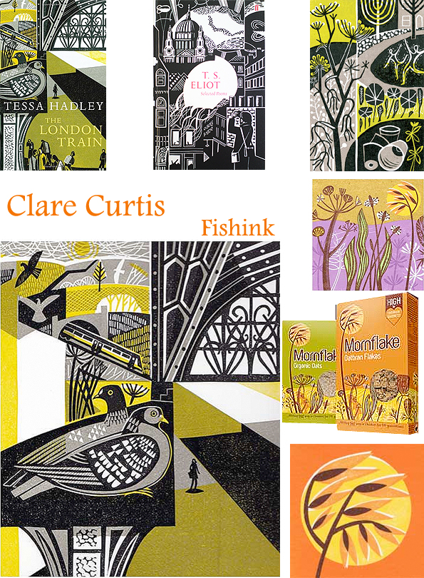 Today she lives in her grandfather’s old house and with relief printmaking as her main focus, Clare not only has returned to her roots, but has found her style and medium to work in. What beautiful images she creates. I love her book covers and breakfast cereal boxes below.