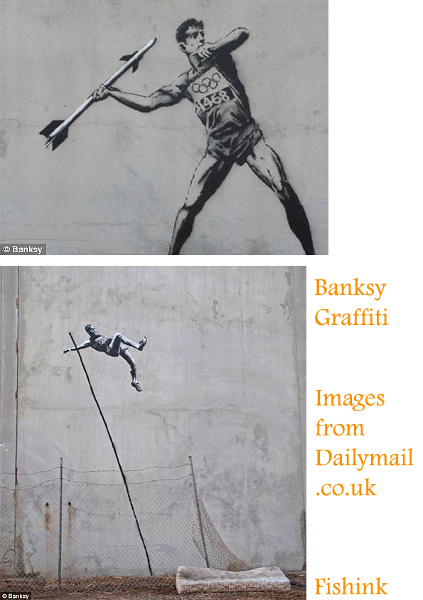 Even Banksy has been getting into the Olympic spirit of things according to the Daily Mail Online site with this graffiti in London.