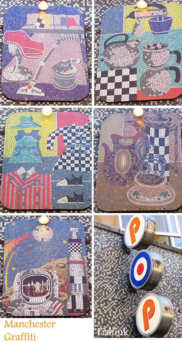 These fabulous mosaics above Pop cafe and boutique on Oldham street, that I must have walked past a few times and not stopped to look at. With my 1960’s obsession with kid’s books, the spaceman on the moon one is my No 1 choice.