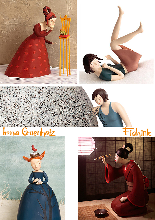 Irma Gruenholz lives in Madrid and models her illustrative 3-D creations out of clay.