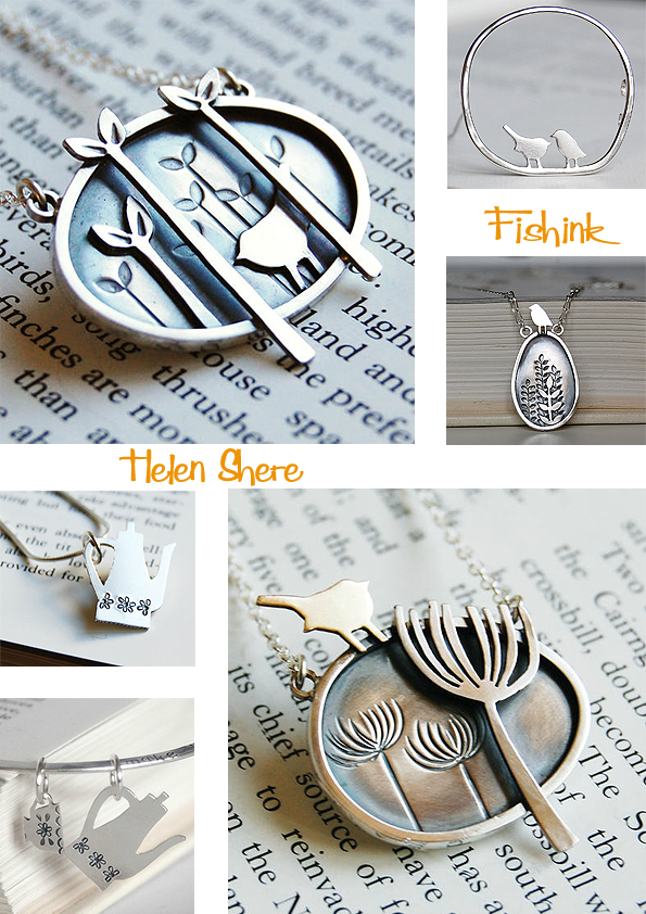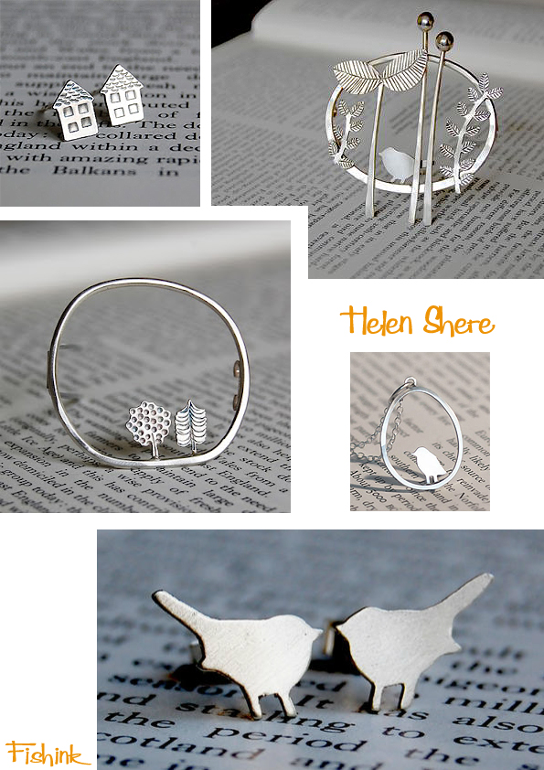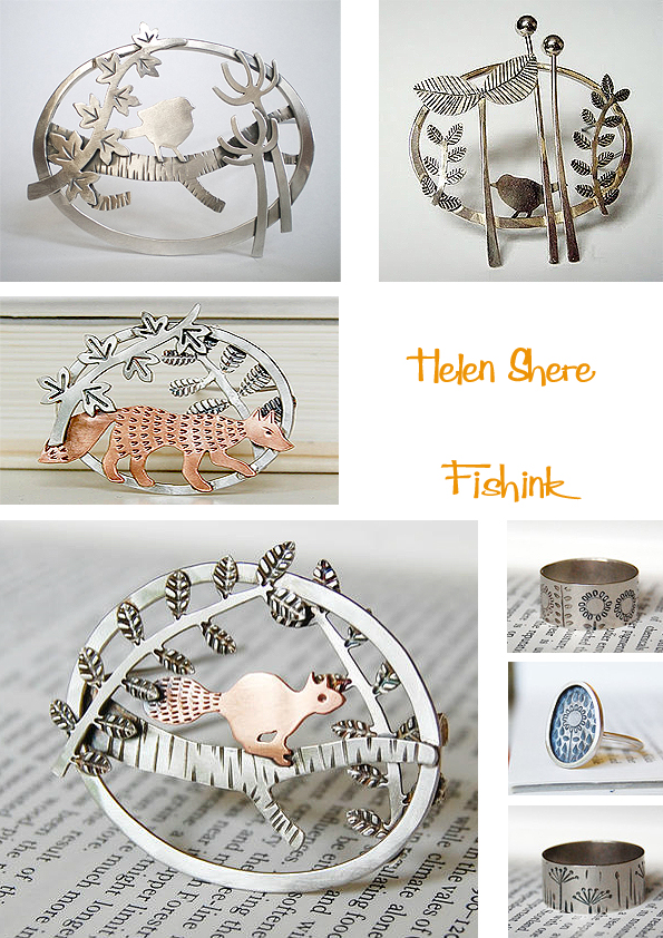 Helen told me ” I am a self taught jeweller and I tend to incorporate new techniques into my designs as my skill level develops. When I began making I looked for simple techniques which allowed me to be illustrative and found the work of contemporary paper cut artists such as Helen Musselwhite and Rob Ryan an inspiration. I was drawn to mid century illustration and contemporary illustrators who have been influenced by mid century styles. Pattern & fine detail also play a role in my jewellery.” I really like the way that she composes her pieces, the score lines, to give added depth, the arrangement and subject matter are all pleasing to the eye.