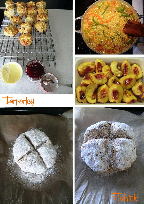 Much home baking, scones, salt dough, paella and peaches drizzled in vanilla and honey before being baked in the oven. Sigh it’s a hard life !