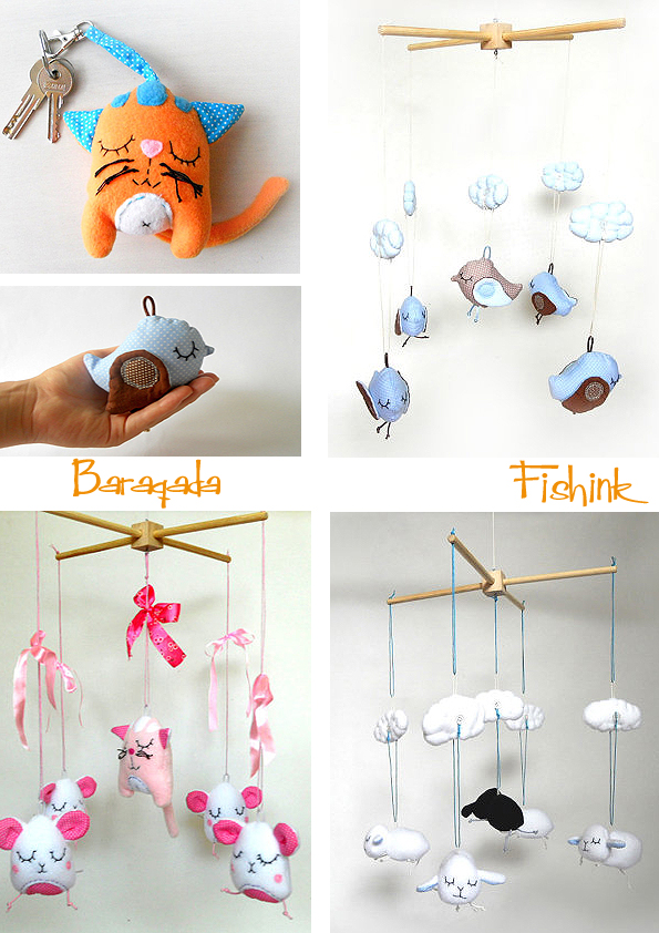 Basis runs a company called Baraqada from her home in Poland. She creates such appealing characters, these mobiles made me smile. The sheep with the clouds and there’s even a black one, brilliant !