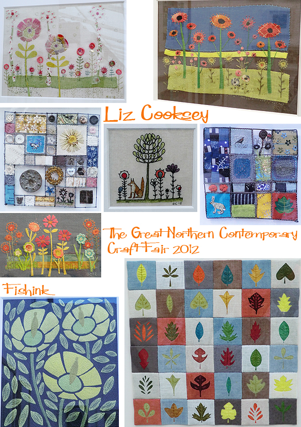 More flowers but this time in textile form. Subtly colourful work by Liz Cooksey, who uses a range of hand and machine textile techniques to produce richly decorative embroideries. My photographs don’t do her work justice as it was behind glass and suffered from a lot of reflection. Click on here name to appreciate this Manchester designer’s rich tapestries.