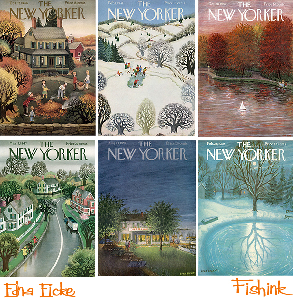 He was working in a display studio when he met Edna Eicke, later a celebrated New Yorker cover artist. Here’s a little of Edna’s work for ‘ The New Yorker ‘  in the late 1940’s and 50’s.