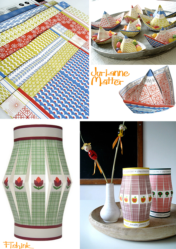 “My main sources of inspiration are my childhood, almost forgotten folkloric traditions and rituals, nature, fabric and paper design. I notice that often it is a combination of colours that somehow attracts my attention, wakes me up and inspires me. That can be in the garden, in the supermarket, in any detail of life, if you just focus. I do have a preference for northern european design, colours and shapes. I am deeply rooted in my Northern European culture. I tend to be nostalgic, so I often go back to midcentury modern times. I can feel so happy looking at simple every-day life stuff (candy-wrappers, retro ceramics, notebooks, textiles), but I also get inspired by artists like Anish Kapoor, James Turrell, Johan Sebastian Bach and the 14th century artist Giotto. In the past few years I took great leaps in my development, both artistically, businesswise and personally too. I would like more and more to focus on design and less on doing business. I love the (international) contacts, I love doing PR, but I don’t like export regulations, taxes and that kind of stuff. I would rather sit down and design! That’s what makes me breathe. All my products are made in Holland and are completely eco-friendly. The paper carries the FSC-logo, and is acid- and chlorine-free. The Vega-Fast ink is a Dutch developed printing ink based on vegetable oils. The plastic-looking bags are actually made from cornflour and are bio-degradable.”
