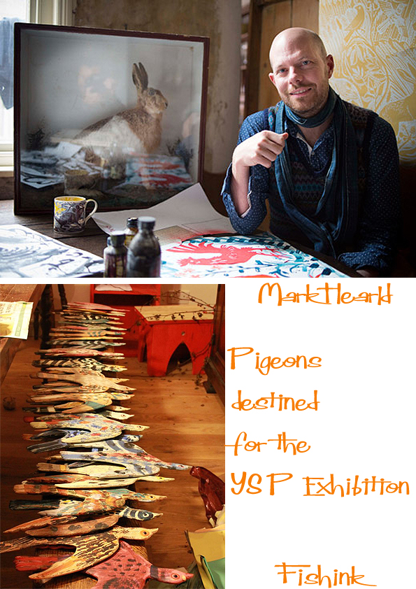Mark is also featured in an exhibition “Birds and Beasts ” starting this saturday at Yorkshire Sculpture Park, The exhibition opens at Yorkshire Sculpture Park near Wakefield on 17 November 2012 and runs until 17 February 2013.  You can meet Mark on Saturday at 2pm as he signs copies of new monograph Mark Hearld’s Work Book (priced £30) published by Merrell Publishers and showcasing Mark’s unstoppable creativity with delightful images and revealing insights into the techniques behind them. There will be hand painted pigeons, illustrations and prints galore, well worth a visit.