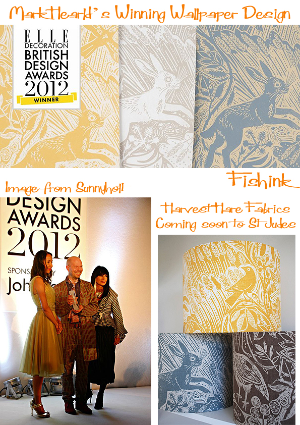 There is so much happening right now featuring my favourite artists that I must just tell you about a few events that are either going on now, or coming up, before the end of the year. Initially I want to say a late congratulation to Mark Hearld who was one of the award winners for the British Design Awards earlier this month presented by the Telegraph Magazine incollaboration with Elle Decoration. The award was for his Wallpaper design ‘Harvest Hare’ available from St Judes Gallery and ironically, I had chosen it to paper my living room a week before it won, I hope there will be some left !