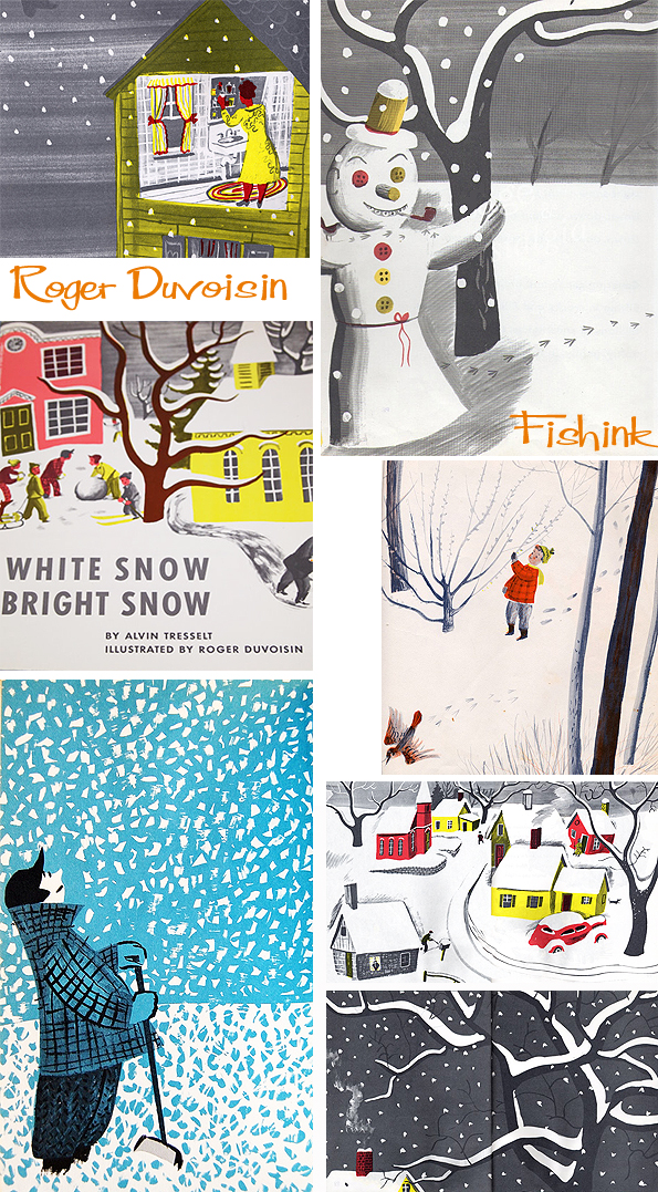 Duvoisin won the prestigious Caldecott Award for White Snow Bright Snow, written by Alvin Tresselt, in 1948, and the Caldecott Honor Award for Hide and Seek Fog, also by Tresselt, in 1966. Duvoisin continued to experiment artistically, exploring the medium of collage during the nineteen-sixties with the same robust enthusiasm he had shown for the bold designs of the twenties.