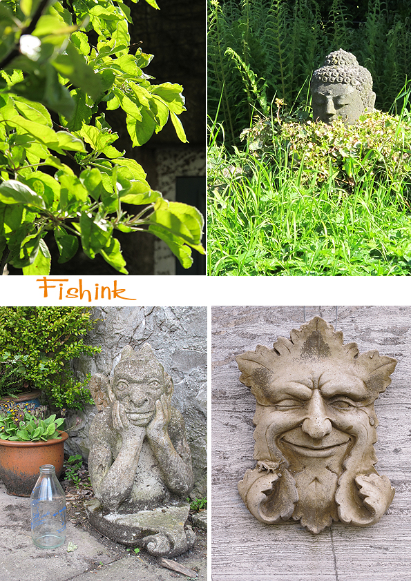 Fortunately Jane was already walking her dog when I arrived at 8.30 so it wasn’t too unsociable an hour. She kindly made me a cup of tea and we sat down in her sunny garden amongst the buddas and green men to finally catch up. We ‘met’ through my blog but hadn’t actually had the chance to chat face-to-face until today. It was like meeting a long lost friend. Funnily we’d already discovered that we had both trained at Ravensbourne College of Art and Design at the same time, but on different courses and our paths hadn’t previously crossed until today.
