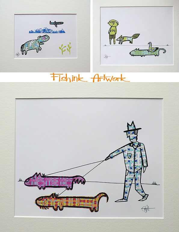 Artwork is also available to buy or view on my Pinterest site. Prices start at just £30 for a signed, card frame-mounted piece of original artwork, and of course they can be posted anywhere worldwide. Which is your favourite ?  Snap one up today and please ‘trumpet’ about Fishink to your friends 🙂 Thank you.