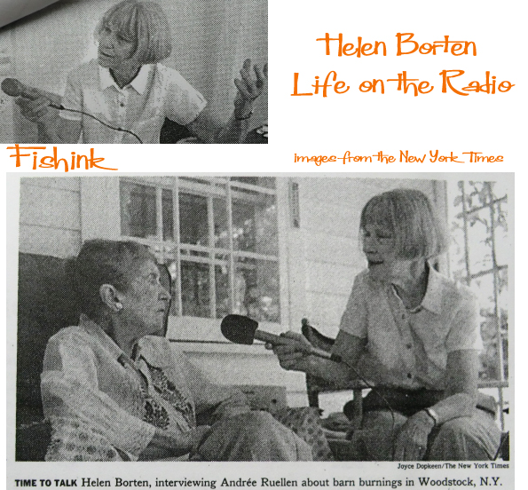 “She works alone recording her interviews on a portable Marantz cassette recorder and, without a transcript, editing on dual Otari machines in her west side apartment in Manhattan. ” She has the ability to see the story behind the story ” said Leonard Lopate, a colleague and host of the National Public Radio Program. ‘New York and Company ‘ who unabashedly calls Ms. Borten a genius ”