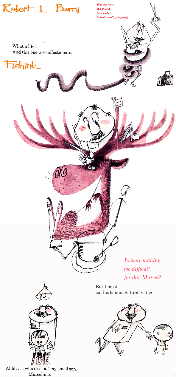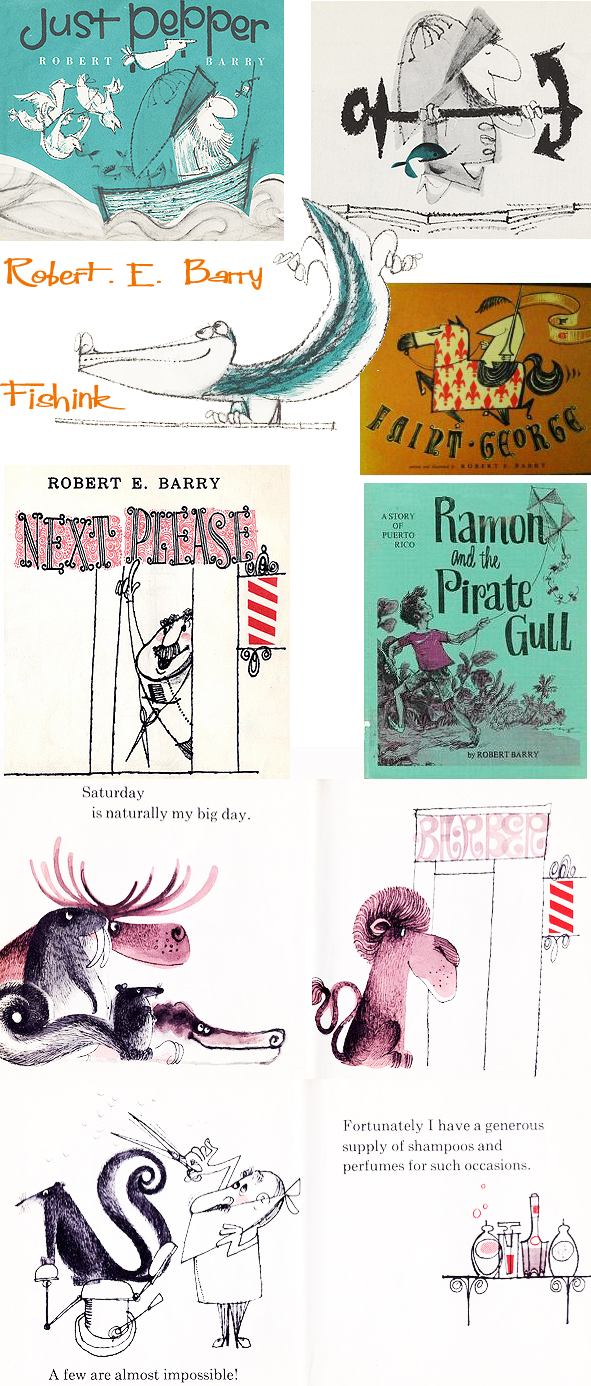 I found these images of covers for a couple of Robert’s books and some pages from ‘Next Please’ featuring a very enthusiastic barber who doesn’t appear to care what shape or size his customers come in.