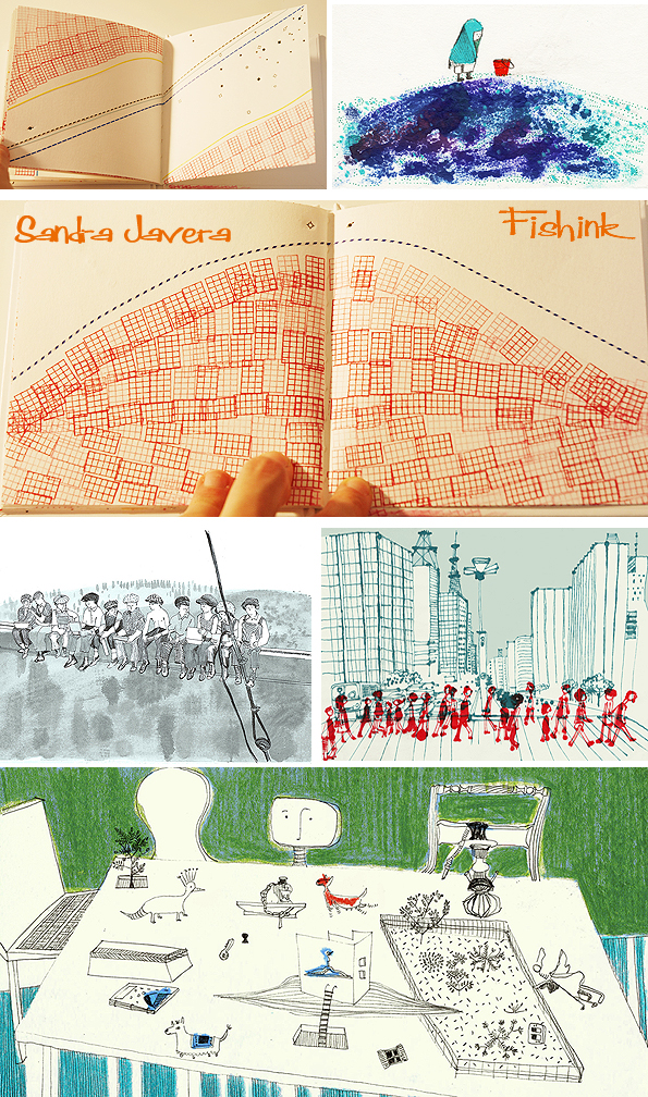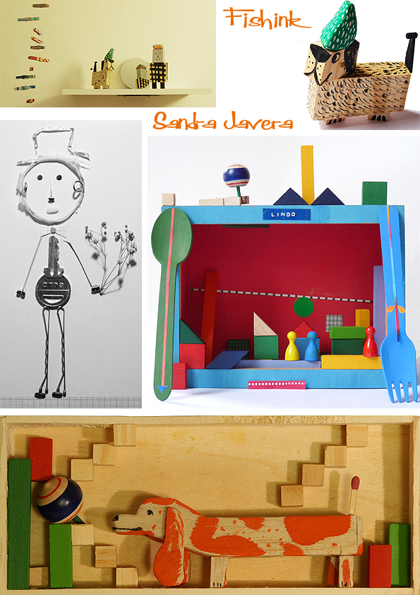 Many of her visual references come from the time she was in college, the drawings of the architects that she studied and the artists and illustrators that her and her friends liked. People such as Paul Klee, Matisse, and Saul Steinberg, influence her work. Her little wooden characters are truly eye-catching. I caught up with Sandra as she returned to NYC (which is now her home) and she kindly gave me some more information to accompany these images.