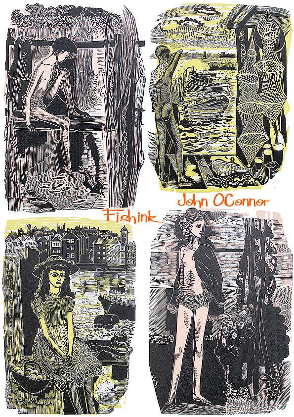 In the 1950s and 60s, O’Connor exhibited at the Zwemmer Gallery, in London, and had many exhibitions throughout Britain. His work was purchased by the Arts Council, the Tate Gallery, the British Museum and the Contemporary Art Society, as well as by several local education authorities; it can also be found in the Oslo Museum, the Zurich Museum and at New York central library. He was elected to the Royal Society of Painter-Etchers and Engravers in 1947, and, in 1974, to the Royal Watercolour Society. He was an honorary member of the Society of Wood Engravers.