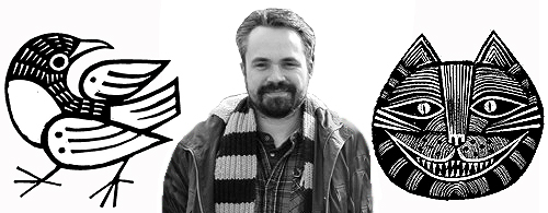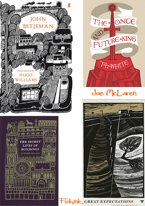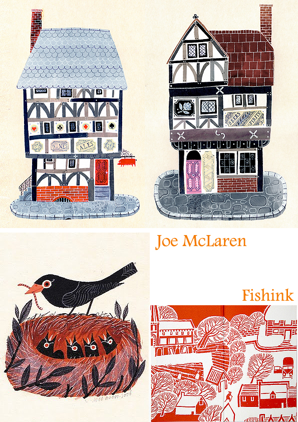 Moving swiftly on… Joe McLaren is an amazing artist. I’ve admired his work for quite a few years now and love his bold, scraperboard feel and it’s quirky, humourous style. Increasingly I’ve noticed ‘him’ creeping into bookshops (on book covers, that is) and through a wide variety of commissions online. I contacted Joe, to share with you, my Fishink friends, a little more about the man behind the work.