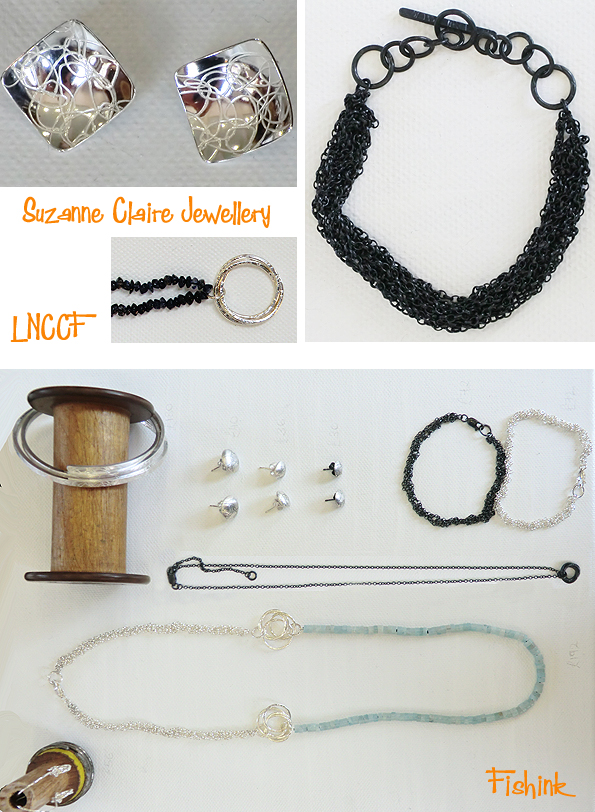 My ‘next door stall neighbour’ for the day was jewellery designer Suzanne Claire who kept me smiling telling me antics that her dog gets up to (it was a dog swooping story kinda day !) Her lovely jewellery was french crocheted ( I think I’ve got that right) using different thicknesses of silver wire and other metals. The chain is also pushed into softened silver to create these lovely stud earrings you see below. Also using sewing and beading techniques, suzanne makes everything by hand in her studio.