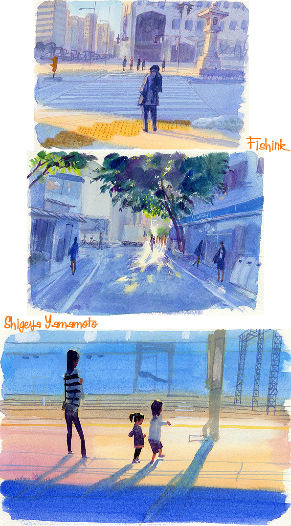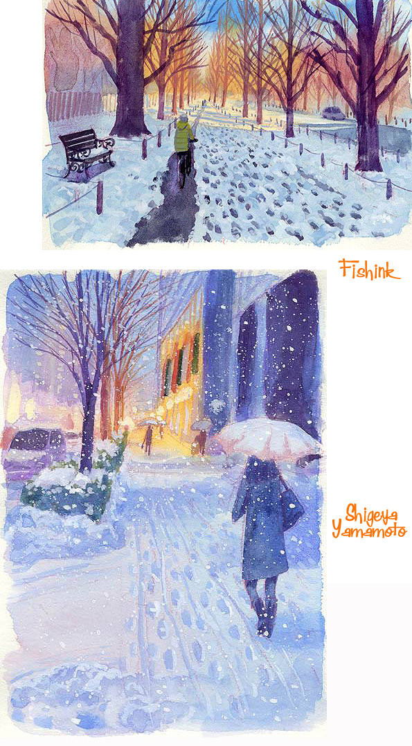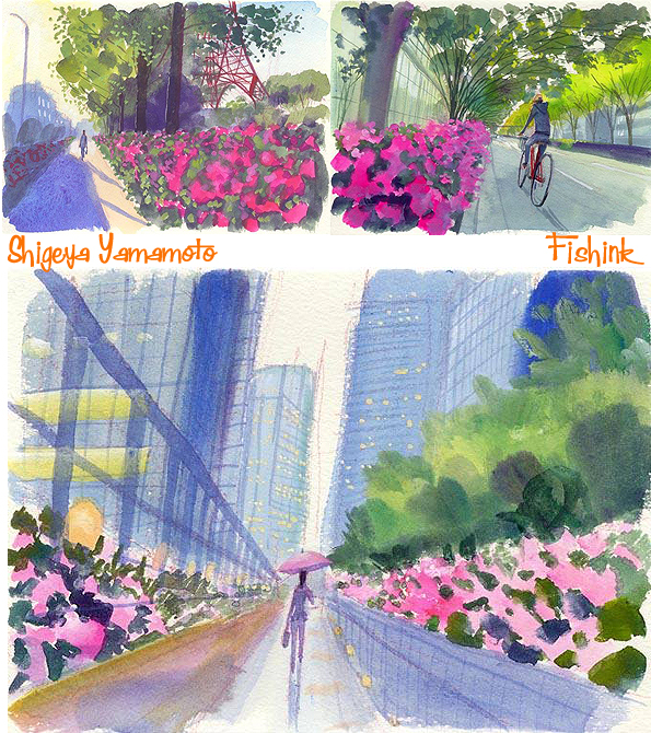 Shigeyay Yamamoto is from Japan. Born around 1964, he’s got an amazing eye for watercolour detail and can capture light or illustrate a season with a real flair !