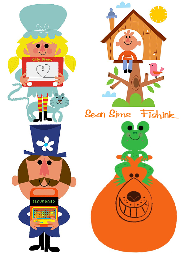 Sean Sims’ design and illustration clients have included: Paperchase, The Guardian, The Discovery Channel, Marie Claire, The BBC, The Independent Magazine, The Sunday Times, Sainsburys, Holland & Barratt, Yellow Pages, Vodafone & Virgin. He was asked by Fisher-Price USA to create a set of illustrations of their ‘classic’ toys in celebration of their 60th birthday which was particularly exciting for Sims because “I am a big fan of vintage fisher-price toys from the 1960’s and 70’s.”