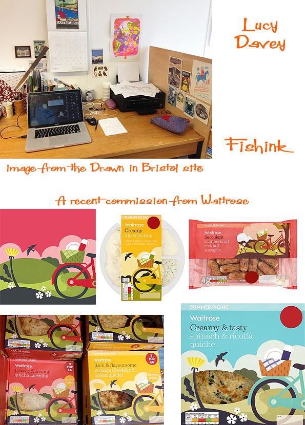 There’s a great interview from the end of last year, with Lucy who’s busy screenprinting over on the Drawn in Bristol site and much more information on Lucy’s own Blog. I must say the thought of a summer picnic hamper on your bike, filled with these beautifully packaged quiches, is making my mouth water ! Many thanks Lucy for taking part and keep up the great work too.