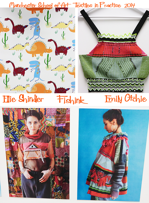 Fun Children’s wallpaper designs by Ellie Shindler and some new tribal influenced wear by Emily Otchie. Fishinkblog 7726 MMU show 2014 5