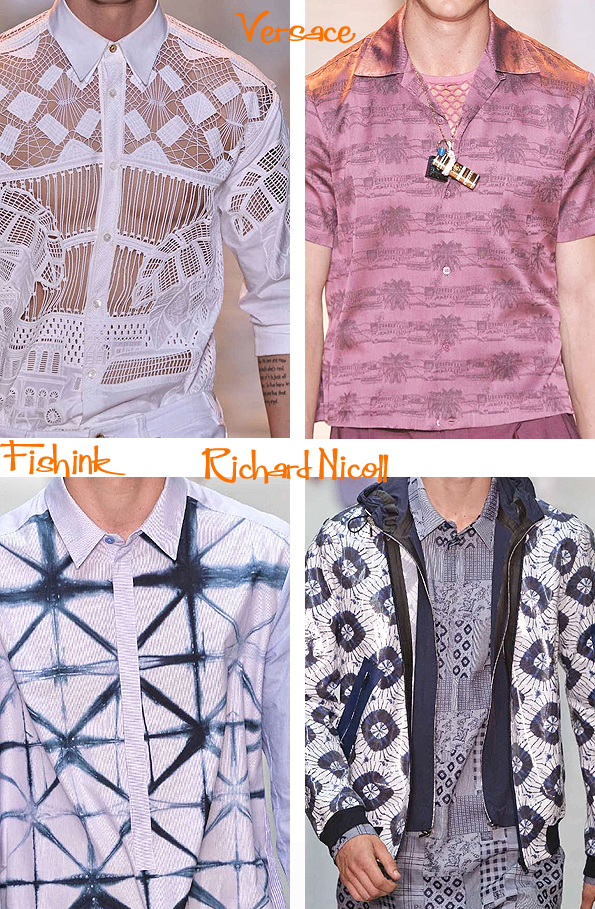 Bold shapes and more delicate lace work as a contrast from Versace, whilst Richard Nicoll has gone for a distinctive tie-dye indigo feel.