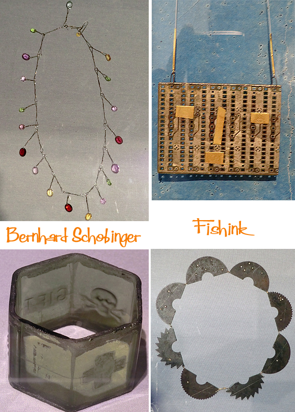 Moving onto a display of the work of Bernhard Schobinger, a jeweller who likes to work with rough found objects.
