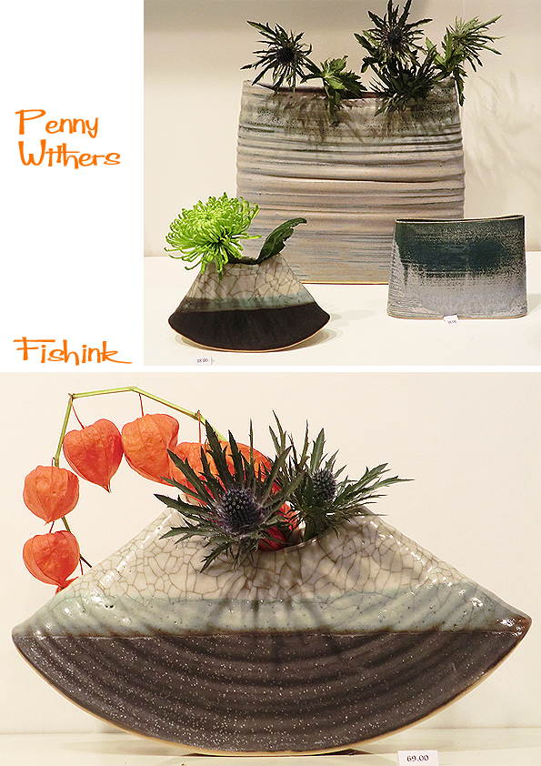 One of my ‘favourite stand awards’ goes to my first entrant, Ceramist Penny Withers. Her beautiful studio ceramics are first thrown on the wheel, leaving the ridges as a feature and later reformed to a different shape when a new base is also added. They are then fired and glazed and finally re-fired to reach their finished forms. Lovely crackle glazes and subtle colours made these firm winners in my mind. Penny was lovely to chat to and also runs pottery courses in Sheffield too.