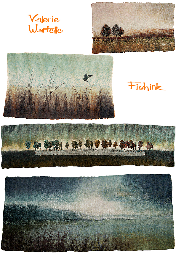 Lastly I spotted the felt work of fibre artist Valerie Wartelle. Her textile landscapes with their dyed and embroidered surfaces were like textural snapshots of the countryside. Sadly I didn’t get to speak to Valerie in person as she was busy with a potential customer but I wanted to include her beautiful work in my post.