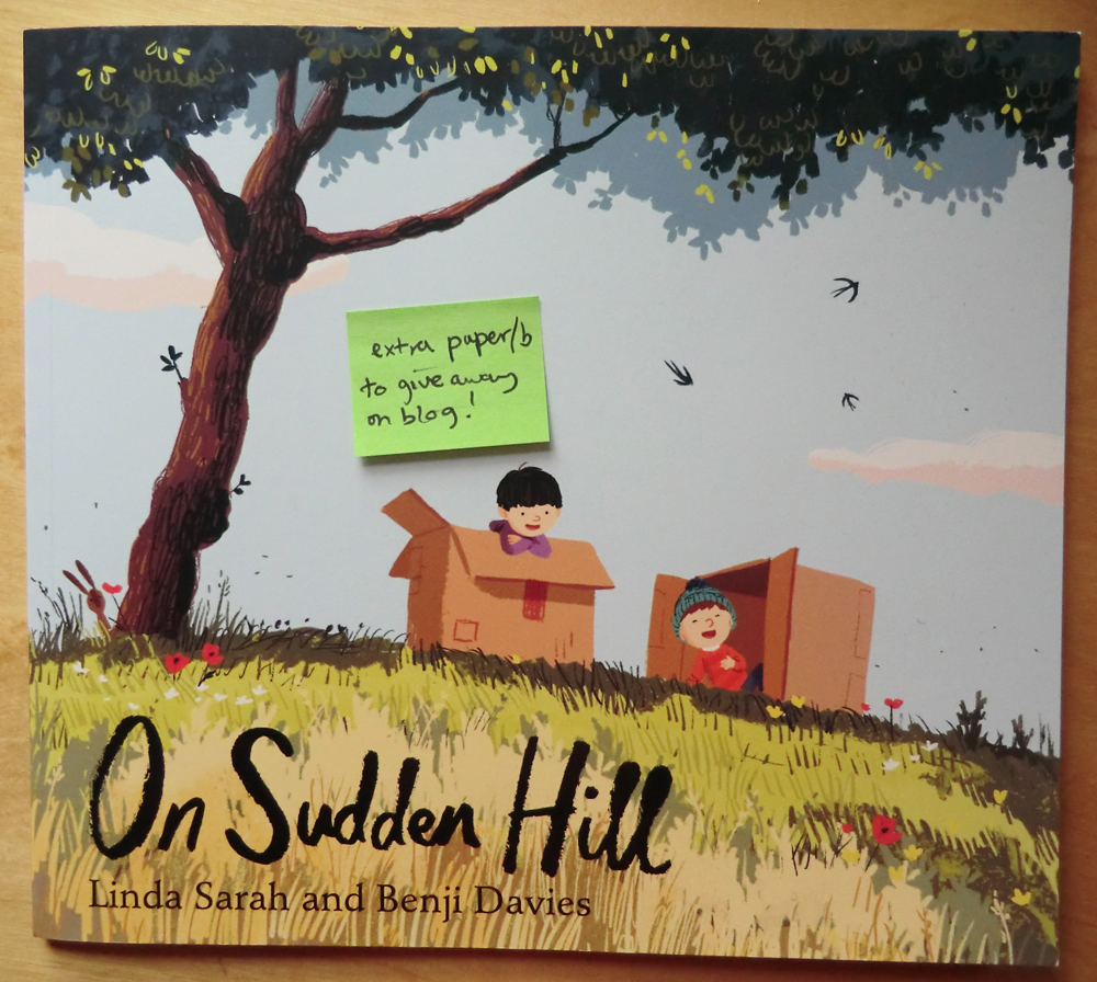 Happy Monday one and all and I thought it was about time for another competition. This time, the prize was very generously donated by non other than the very talented Mr Benji Davies himself ! and it’a a paperback copy of his latest book ‘On Sudden Hill’ written by Linda Sarah. Which I’m delighted to say has just been nominated for the 2015 Kate Greenaway Medal !