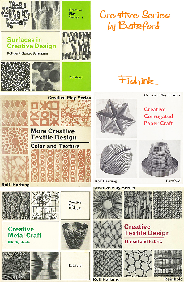 For those of you who love mid-century craft books, I came across this fab series published by B.T. Batsford Ltd (now called Batsford Books) in the early 1960’s. Written by Ernst Röttger it contains images of students work from a variety of ages and covers areas such as Clay, Paper, Fabric, Wood, Metal, Different Surfaces and Creative Drawing.