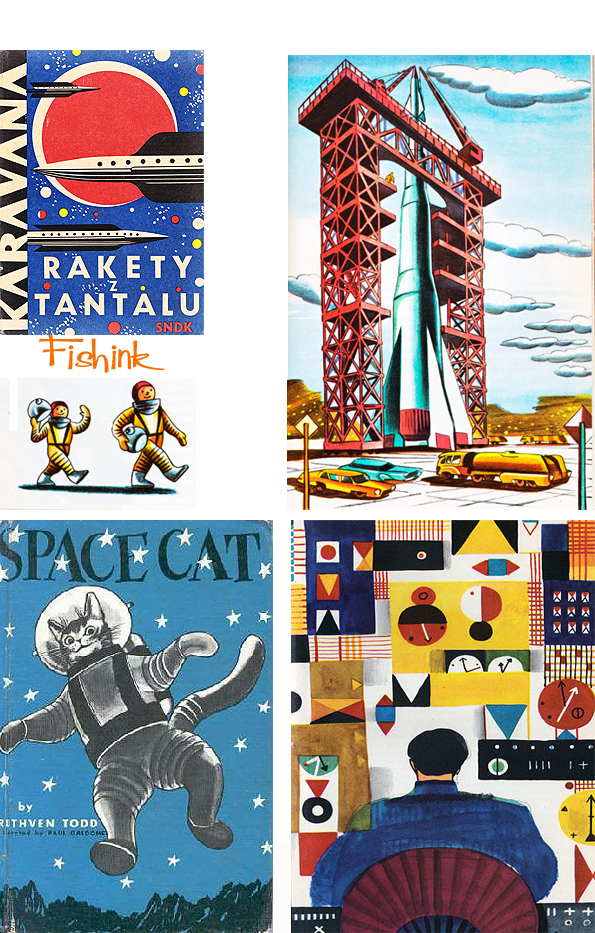Tons of space books from the 50’s and 60’s. It appears that everyone liked making rockets.