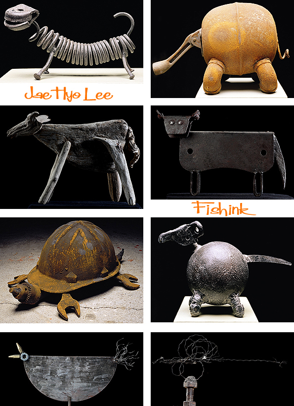 Lee creates some weird metallic animals too. The tortoise-helmet made me smile.