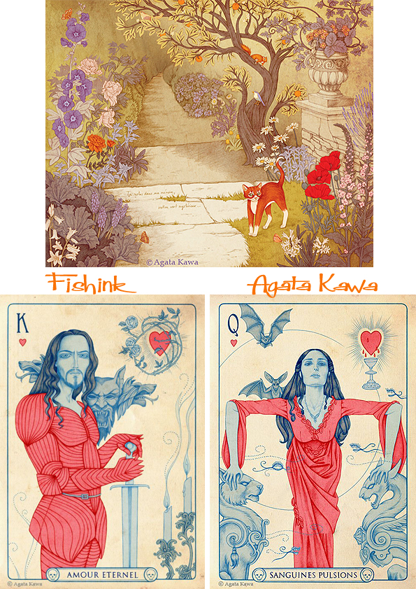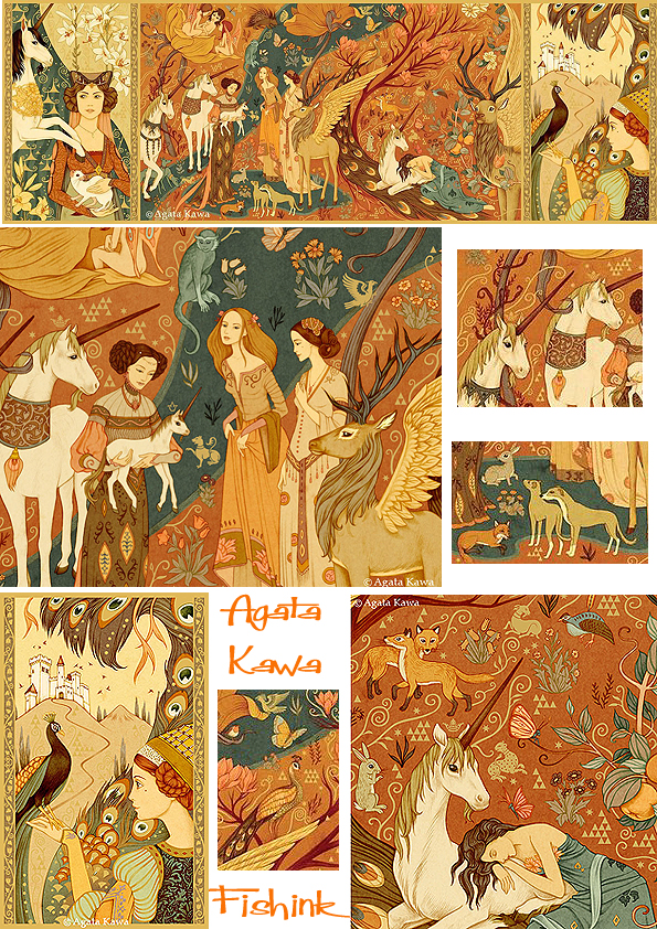 Along the years, Agata Kawa has been a Graphic Designer, an Art Director for animated movies, a drawing, painting and sculpture teacher in ateliers. As a freelancer she is now a Painter, an Arts & Crafts designer, an Illustrator (notably children books), and lives near Paris. With her red hair she could almost be a modern day Pre-Raphaelite model herself lol